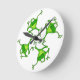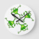 These jumping aerobics frogs add colour and charm to this wall clock. Choose two sizes of round clocks or a square frog. The four cute cartoon frogs are rotated to each direction of the clock, like synchronized swimmers or tumbling acrobats.