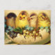 Easter postcard with four cute vintage chicks in an egg.