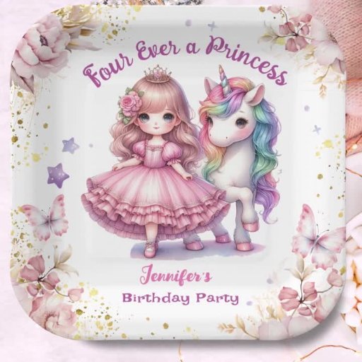 Add a dash of magic to your little one's birthday celebration with our 'Four Ever A Princess' Unicorn 4th Birthday Party Napkins! Shop today and set the tone for a special party!🦄✨