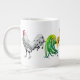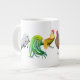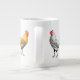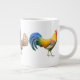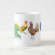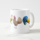 Original fine art design of colourful fancy roosters by designer Carolyn McFann of Two Purring Cats Studio printed on a quality jumbo mug for poultry fans.