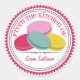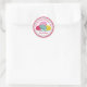A kitchen label featuring an illustration of four French macarons (pink, yellow, purple, and blue) inside a decorative pink and blue circle with pink text "From The Kitchen Of." Personalize with your name in pink.