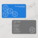 A business/profile card template with a stylish four gear wheel motif on the front. Company name and business type on the front top right. Name and all other contact on the reverse with a single gear motif in the bottom right. Ready to be customized with your details, suitable for many types of business.