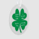 L'avant de cet ornement de meilleur ami a un trèfle à quatre feuilles contre un arrière - plan blanc et le dicton : Un bon ami est comme un trèfle à quatre feuilles - difficile à trouver et chanceux à avoir. Le dos de l'ornement est vert - vous pouvez éditer Design pour ajouter votre nom et le nom de votre ami.