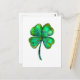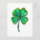 traditional watercolor artwork of a four leaf clover in bright green colours as a decorative postcard