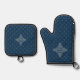 Four Leaf Rosette Airforce Blue Foulard Pattern Oven Mitt & Pot Holder Set