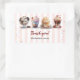 Celebrate the sweet birthday kid with a make-your-own sundae party. Four loaded ice cream sundaes are featured on this sticker featuring a light striped background reminiscent of a sweet shoppe. Use as envelope seals or on favours for a make-your-own sundae ice cream birthday party, ice cream social, or fundraiser. Available with matching products.