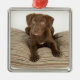 Four-Month-Old Chocolate Lab Puppy on Pillow Metal Ornament