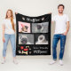 Add your pets name and photos to this easy to adjust fleece dog blanket. 4 photo option. Fun paw print, rubber ball, food bowl, and bone illustrations.