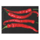 Four Red Chilies - Four horizontal red cayenne chili peppers photographed on a simple black background.