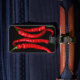 Four Red Chilies - Four horizontal red cayenne chili peppers photographed on a simple black background.