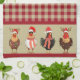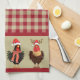 Four Santa Chickens - Red and Tan Lumberjack Plaid Kitchen Towel