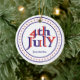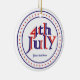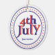 Fourth 4th of July blue red text design ornament. The text 4th July in a circle with blue stripes and red stars.