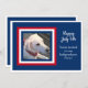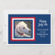 This festive looking 4th of July invitation card features a red, white, and blue frame with a photo of Olive, a beautiful Labrador mix. Photo and text are customizable.