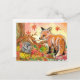 Fox and Ferret in Autumn Leaves Postcard