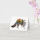 A squirrel rides a fox who is carrying the harvest feast on his back. Send this unique wild animal card for Thanksgiving or for a dinner party invitation.