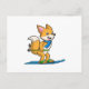 Fox as Skier with Ski & Ski poles Postcard