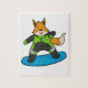 Fox as Snowboarder with Snowboard Jigsaw Puzzle
