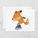 Fox at Ice skating with Ice skates Postcard