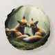 Fox Cuddle in Misty Forest Round Pillow