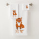 Bath towel set, consisting of a face cloth, hand towel and bath towel with a fox design. You can customise this bath towel set with any text of your choice. Should you require any help with customising then contact us through the message link on this page. Fox design bathroom towel set
