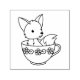 Adorable little fox with big ears and bushy tail is sitting in a teacup decorated with flowers. Can be used as a colouring page.