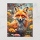 A pretty little fox is looking at you. He's sitting between flowers playing with butterflies.