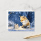 Step into a winter wonderland with this heartwarming fox illustration. Set beneath a snowy night sky, a curious fox gazes at a wrapped gift nestled in the snow, surrounded by quiet trees and falling flakes.