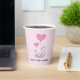 Fox Kit and Pink Heart Balloons Design Paper Cups with customizable text and background color.
