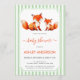 Fox Mama and Baby Shower Pale Green Stripes Cute Invitation