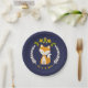 Baby shower paper plates featuring an illustration of a fox surrounded by a wreath with illustrations of an acorn leaves, and flowers.