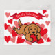Fox Red Lab Puppy Chewing Heart Valentine Holiday Postcard