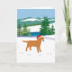 Fox Red Labrador Christmas Winter View Holiday Card for dog lovers who love Labradors. Beautiful Fox Red Labrador Silhouette design with Santa Hat. Snow and evergreen trees. Created by Naomi Ochiai.