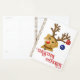 Cute Fox Red Labrador Retriever is dressed up in her holiday Rudolph red nose, reindeer antlers and sleigh bell collar, complete with hanging Peace and Joy decorations. Customize this design with your preferred holiday greeting. Black and Yellow Labrador Retreiver and Border Collie designs are also available.