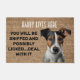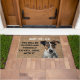 Custom dog Fox Terrier doormat with a funny quote. "You will be sniffed and possibly licked...Deal with it." It has a non-slip rubber that won't crack or buckle, resists fading, mould, and mildew and can be easily cleaned with a hose. Be creative - click on CUSTOMIZE to add/remove/change text, change the picture, resize the picture, change colours, background or anything else the customization tool will allow!