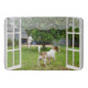 Pictured looking through a window are two brown and white fox terrier dogs are exploring the garden,