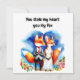 Fox valentines greeting card features fox wedding couple in love with phrase You stole my heart you sly fox