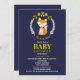 A baby shower invitation featuring an illustration of a fox inside a wreath decorated with flowers, leaves, and an acorn. Personalize the text.