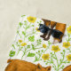 Foxes and buttercups on natural white beach towel