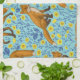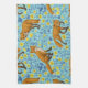 Foxes and buttercups on pool blue kitchen towel