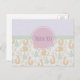 A postcard with a pattern illustrated with adorable foxes, birds and whimsical trees. The top half has a lavender purple background with a linen style texture. The centre has a pastel green banner. A pink circle holds the words "Thank You'. I think this whimsical pattern is really cute and reminds me of the happy times spent in nature.