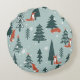 Foxes, fir-trees, winter, colourful pattern round pillow