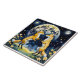A magical moment, with foxes dancing by moonlight, in this image generated using artificial intelligence software. Perfect gift for anyone who loves animals, dancing, fairy tales, or all of them. -- Ceramic tiles can be incorporated as a feature in a countertop, tabletop, or backsplash, used as a protective coaster under a hot dish, or framed and hung as wall art.