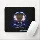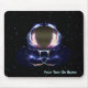 A blue and purple fractal image resembling an astronaut's helmet and shoulders on a starry background. Add your own text.