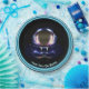 A blue and purple fractal image resembling an astronaut's helmet and shoulders on a starry background. Add your own text.