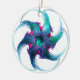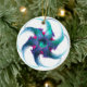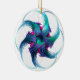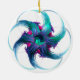 Swirls of pink, aqua, blue and purple with a white background make up this beautiful abstract fractal image. Now imagine it spinning around.