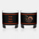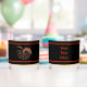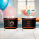 A multi-coloured (red, yellow and orange), spiralling fractal image, resembling a bird or feathered dragon, on a dark background. Customize by adding your own text on the reverse side. You may change both the text colour and font.
