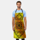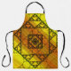 Three styles of hand-drawn fractals, including Sierpinski triangles, Apollonian gaskets, and a similarly themed square design, make up the layers of this geometric mandala, overlaid onto a bright yellow and orange gradient.