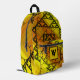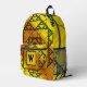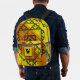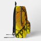 Three styles of hand-drawn fractals, including Sierpinski triangles, Apollonian gaskets, and a similarly themed square design, make up the layers of this geometric mandala, overlaid onto a bright yellow and orange gradient. Customize the initial on the front pouch of this backpack with your own monogram to make this accessory uniquely yours.