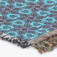 A mesmerizing, intricate pattern composed of glowing blue, flower or web-like structures arranged in a symmetrical, repeating geometric formation. The interconnected lines and nodes create an almost fractal-like appearance, resembling a fusion of neon circuitry and delicate lacework. The dark background enhances the luminescent effect, making the design appear as though it is pulsing with an electric glow.