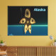 A brown-toned fractal image suggesting a highly-stylized Inuit hunter, wearing traditional fur clothing, holding a harpoon with an ivory head. The image is superimposed on a background depicting the dark polar winter. Text reading "Alaska" also appears in glowing blue and white.